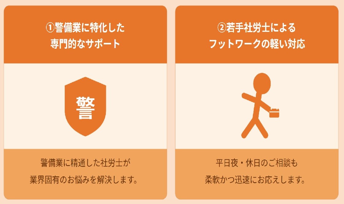 また、警備業は公安委員会による監査(立入検査)が定期的に行われ、法令遵守や帳簿類の整備が求められます。監査に備えた労務管理体制や書類整理、就業規則や雇用契約書の整合性確認など、実務的なアドバイスを行い、企業が安心して監査に臨めるようサポートいたします。